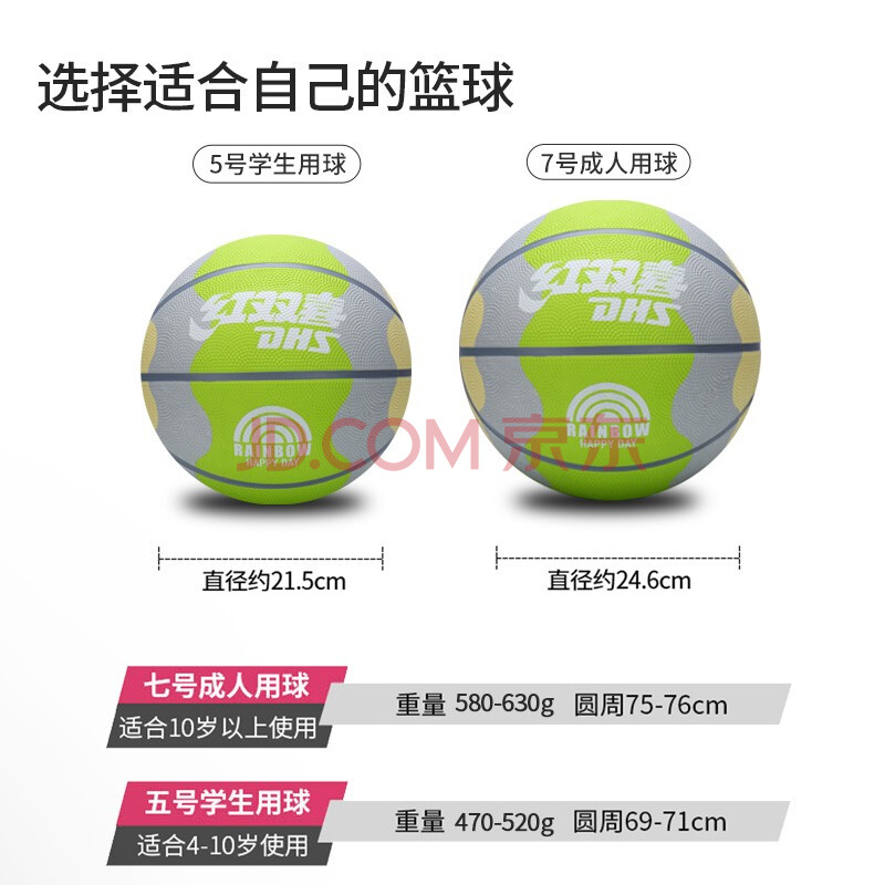 商品相册:红双喜(DHS)篮球儿童成人高弹室内外水泥地中小学生青少年训练比赛用球7号第