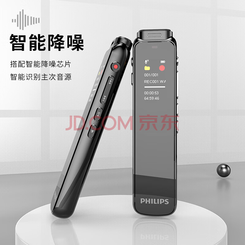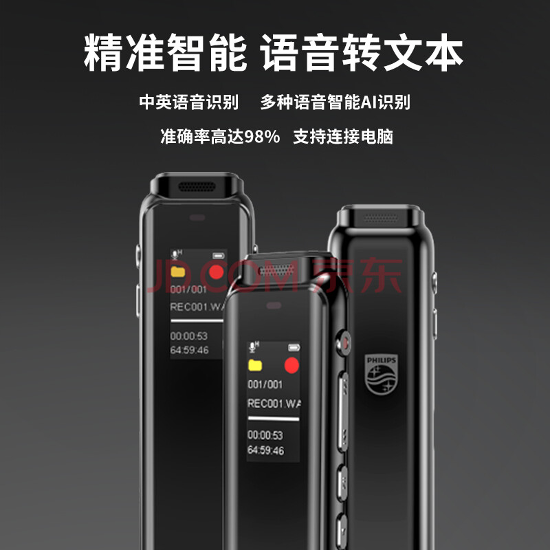 商品相册:PHILIPS 专业录音笔VTR5010Pro 32G 免费APP语音转文字 高清降噪 学习采访会议高灵敏录音器第