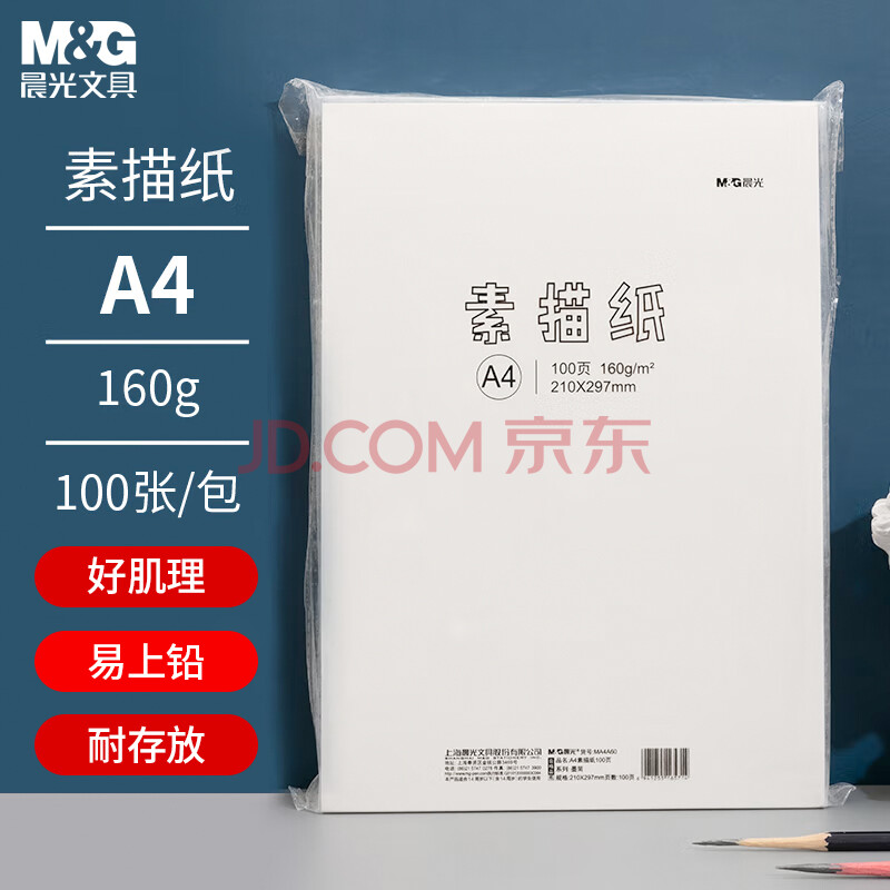 商品相册:晨光(M&G)文具A4/160g大容量素描纸素描本美术写生临摹初学生100张加厚MA4A60开学礼物第