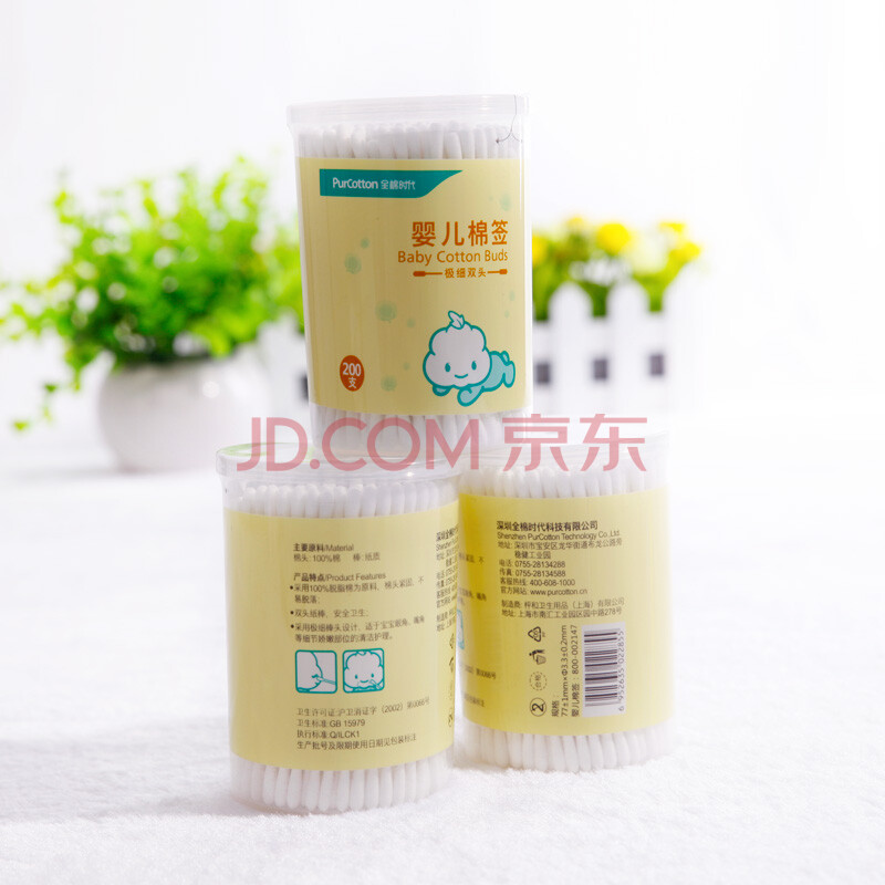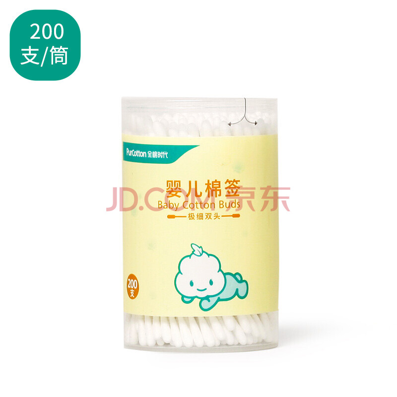 商品相册:全棉时代婴儿棉签护理掏耳棉签棉棒细轴棉棒耳孔清洁棉签肚脐200支/1筒第