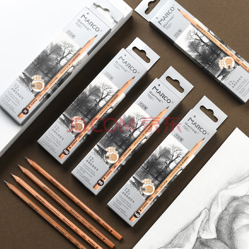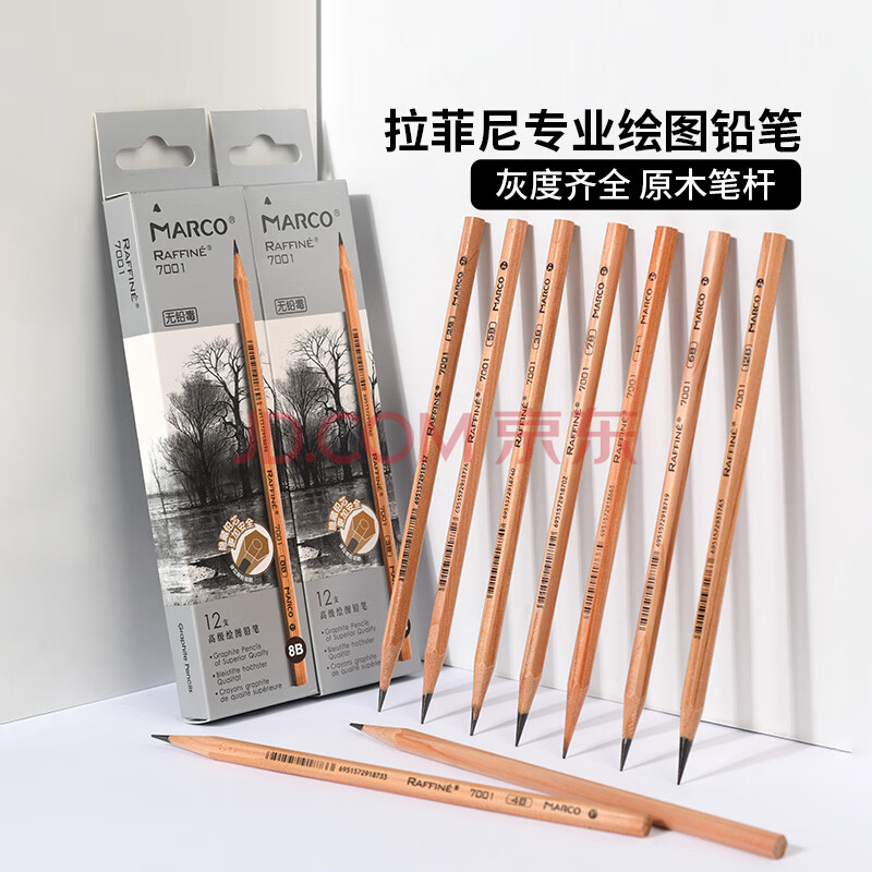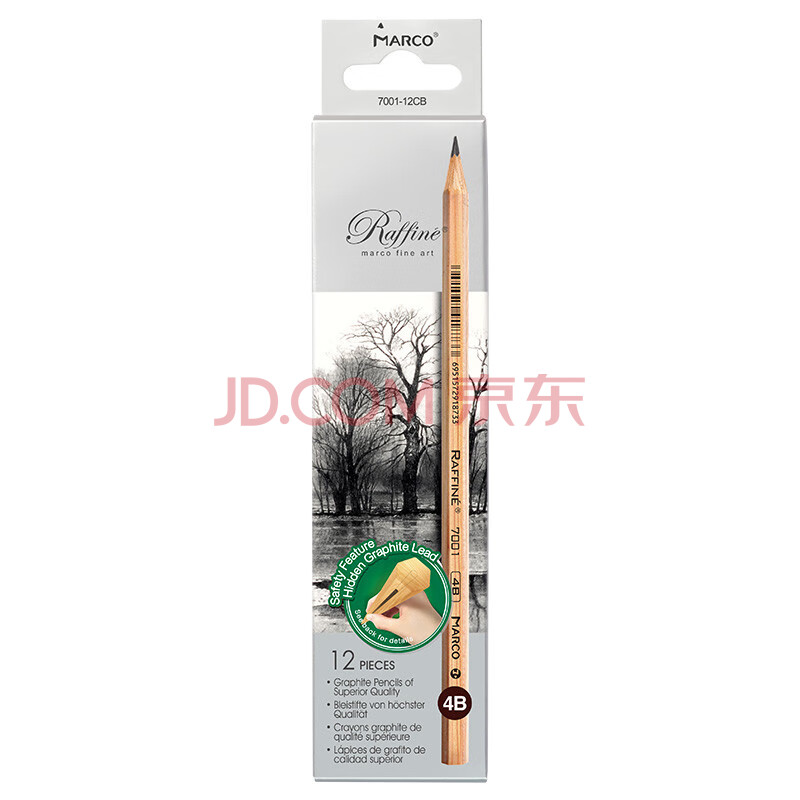 商品相册:【全网低价】马可(MARCO) 4B素描铅笔12支 原木专业美术六角杆手绘速写绘图笔纸盒装学生初学者考试画画专用7001-4B 速写 马克笔绘画第
