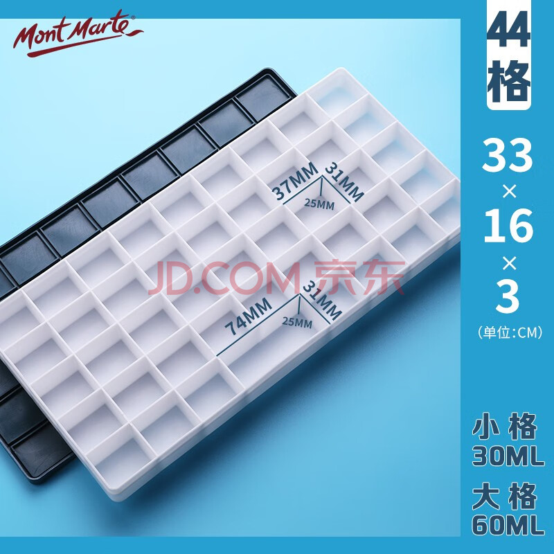 商品相册:【全网低价】蒙玛特(Mont Marte)颜料盒44格 软盖调色盒水粉绘画调色板美术画画颜料盘套装 便携密封保湿盒3件套SX-ZYPJ-4美术写生第