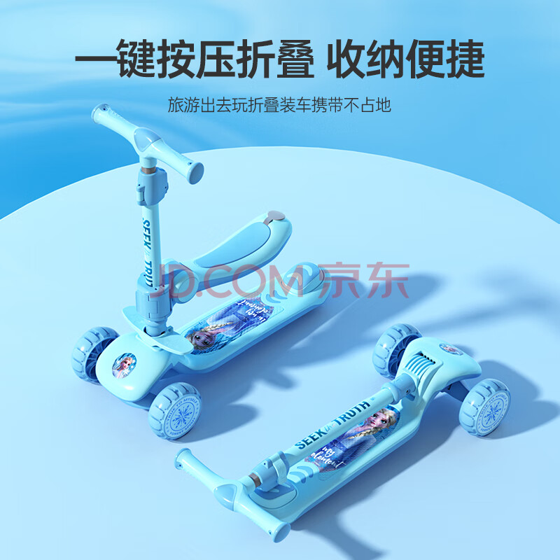 商品相册:迪士尼(Disney)儿童滑板车可坐可滑二合一多功能学步车闪光可折叠升降送小孩礼物第