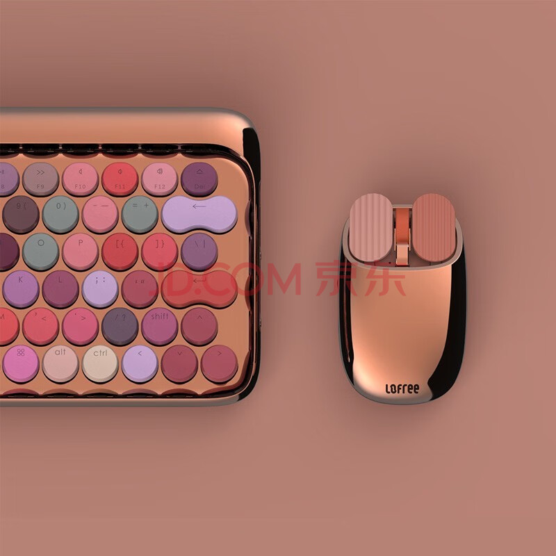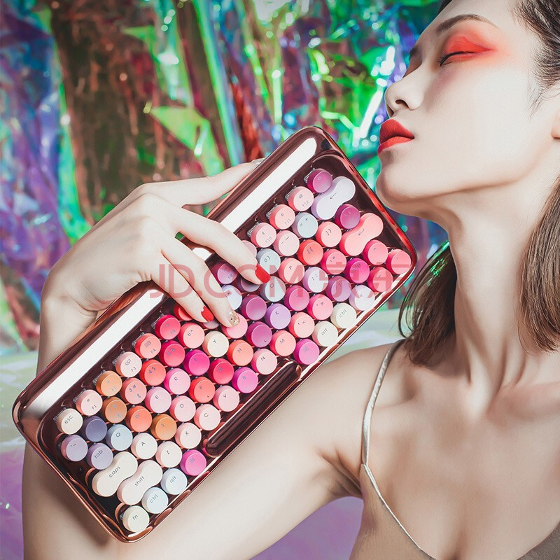 商品相册:洛斐(LOFREE)多系统兼容 无线蓝牙多功能电脑笔记本办公家用机械玫瑰金键盘 EH112S第