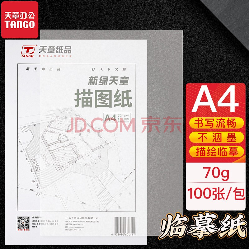 商品相册:天章 (TANGO)A4半透明描图纸硫酸纸 设计制图画图纸转印图纸 练字专用 工程描红绘图纸临摹拷贝纸 70g 100张/包第