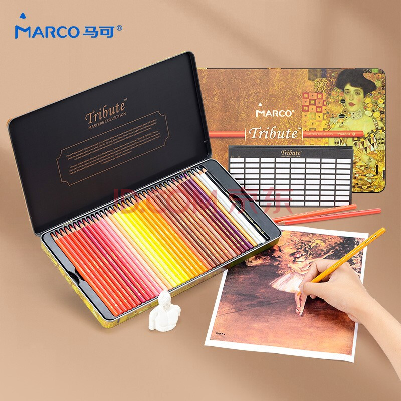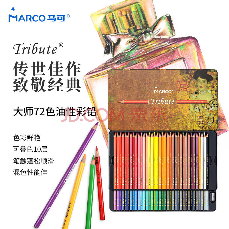 商品相册:马可(MARCO)72色油性彩铅美术生专用 大师铁盒开学生日礼物儿童男女孩学生画风筝出游相纸涂鸦彩色铅笔第