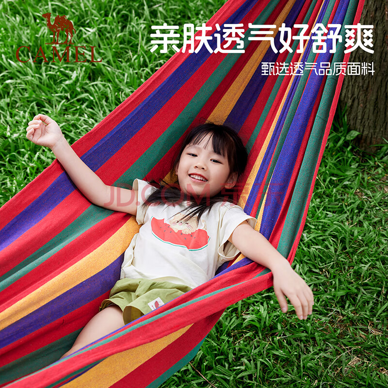 商品相册:骆驼(CAMEL)户外吊床野营宿舍公园成人防侧翻吊床秋千A1S3GA102 红色彩条第