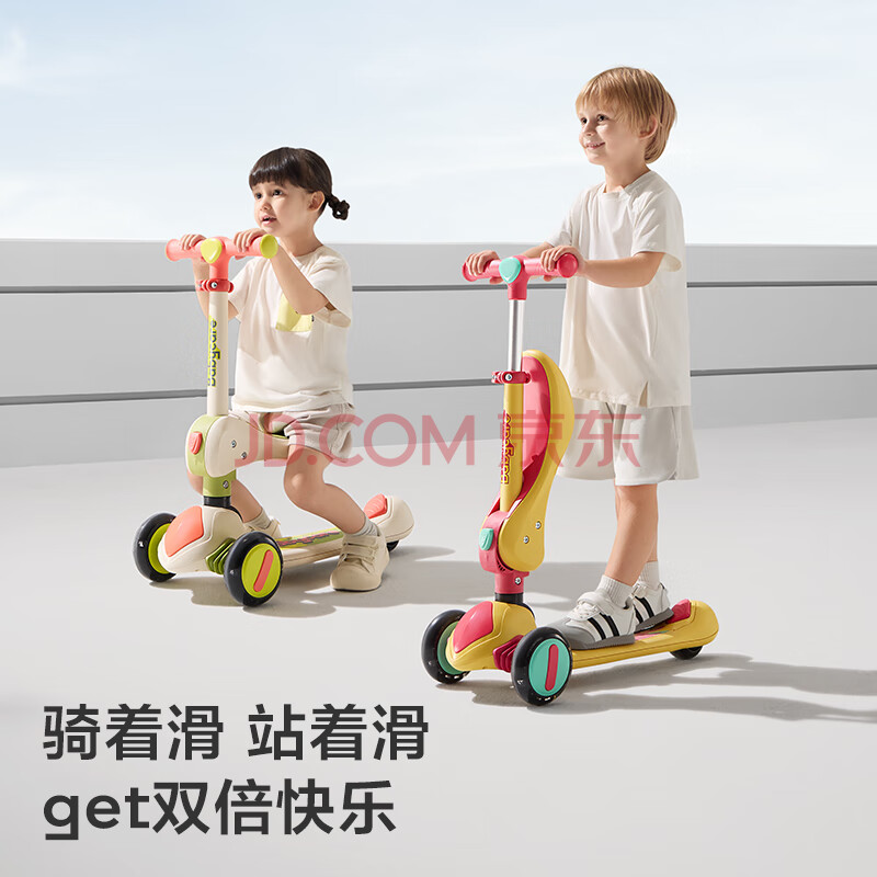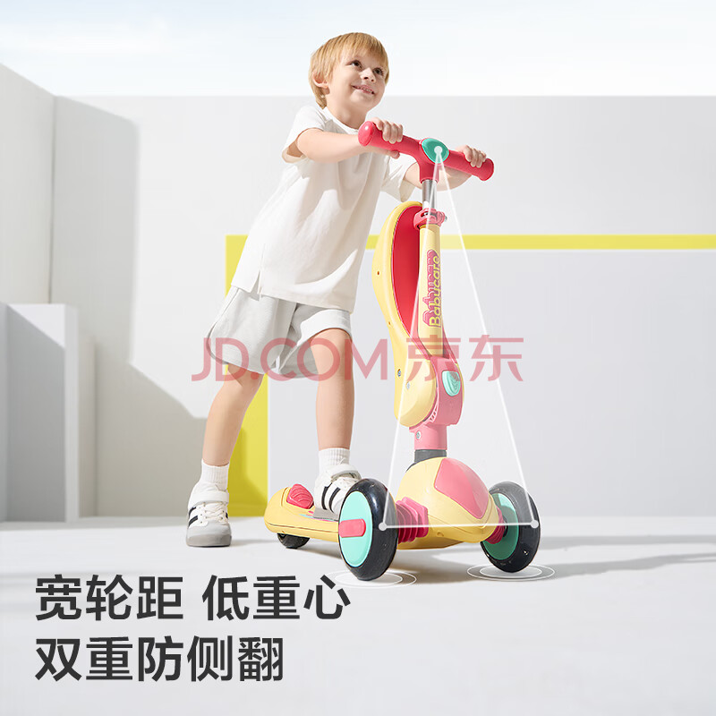 商品相册:babycare儿童滑板车2-6岁二合一折叠童车重力转向宝宝可坐生日礼物 洛克黄第