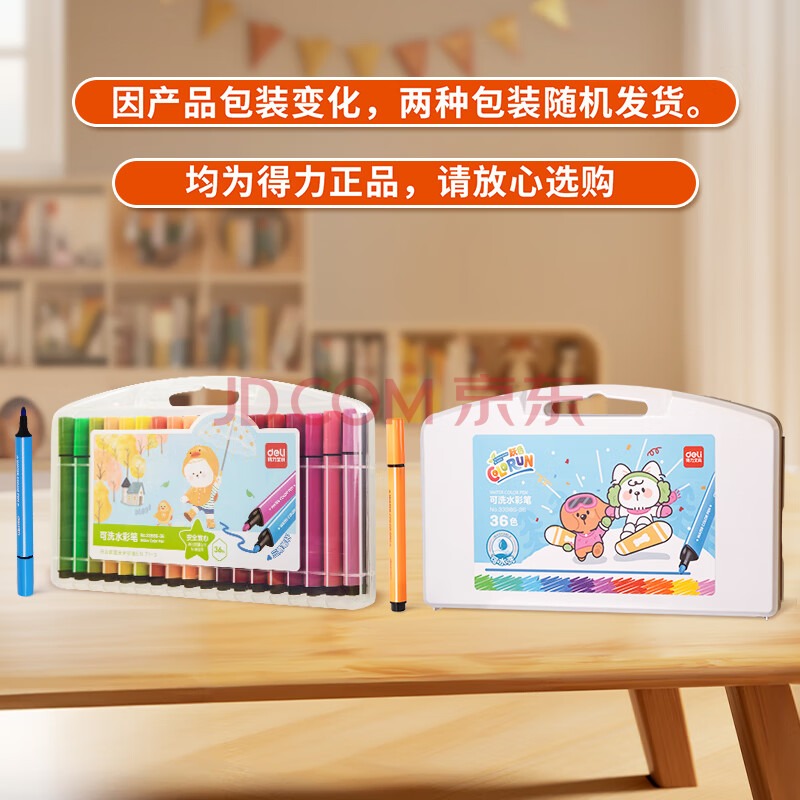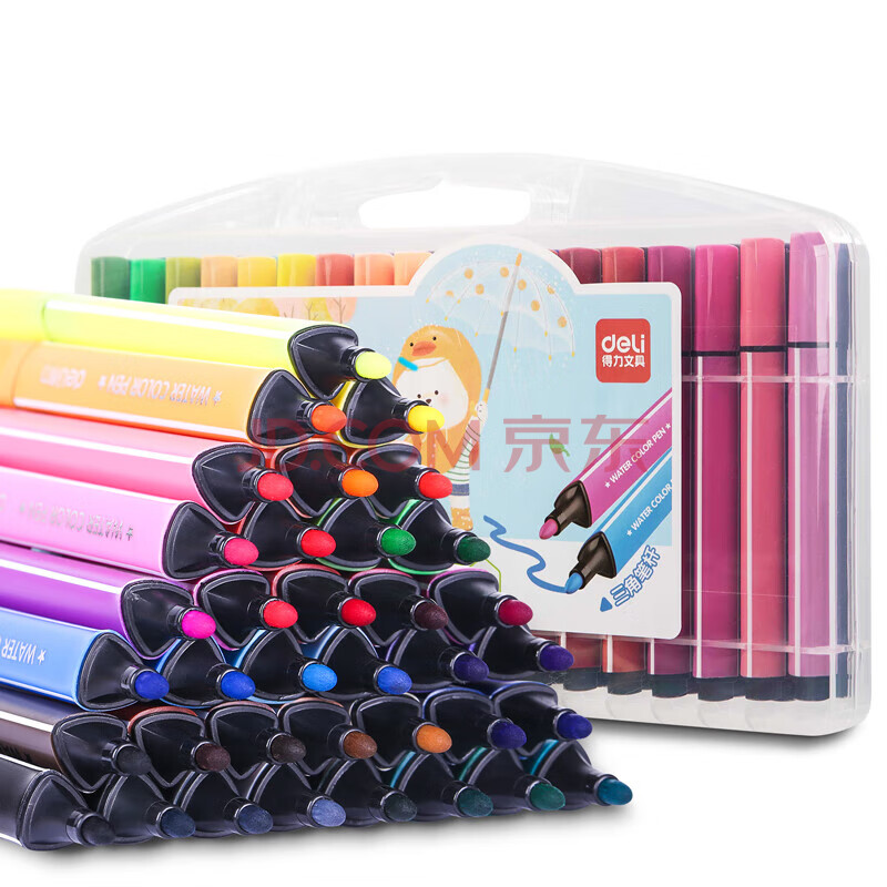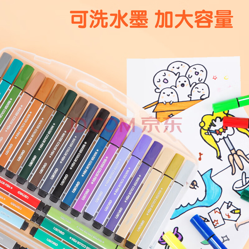 商品相册:得力36色可水洗水彩笔易握粗三角学生儿童涂鸦涂色颜色马克笔画笔绘画文具水彩笔第
