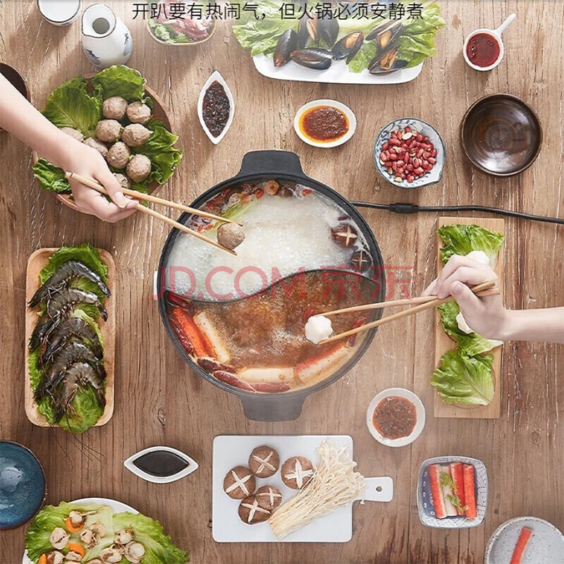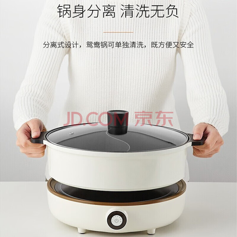 商品相册:九阳(Joyoung)电火锅鸳鸯锅家用IH电磁加热涮肉分体式火锅锅插电4.5L大容量C21-HG3 白色第