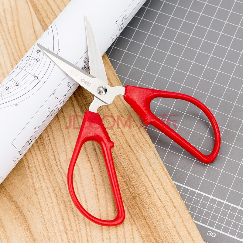 商品相册:得力(deli)145mm小号家用生活厨房剪刀 不锈钢剪刀 手工缝纫办公剪子 红 6035第