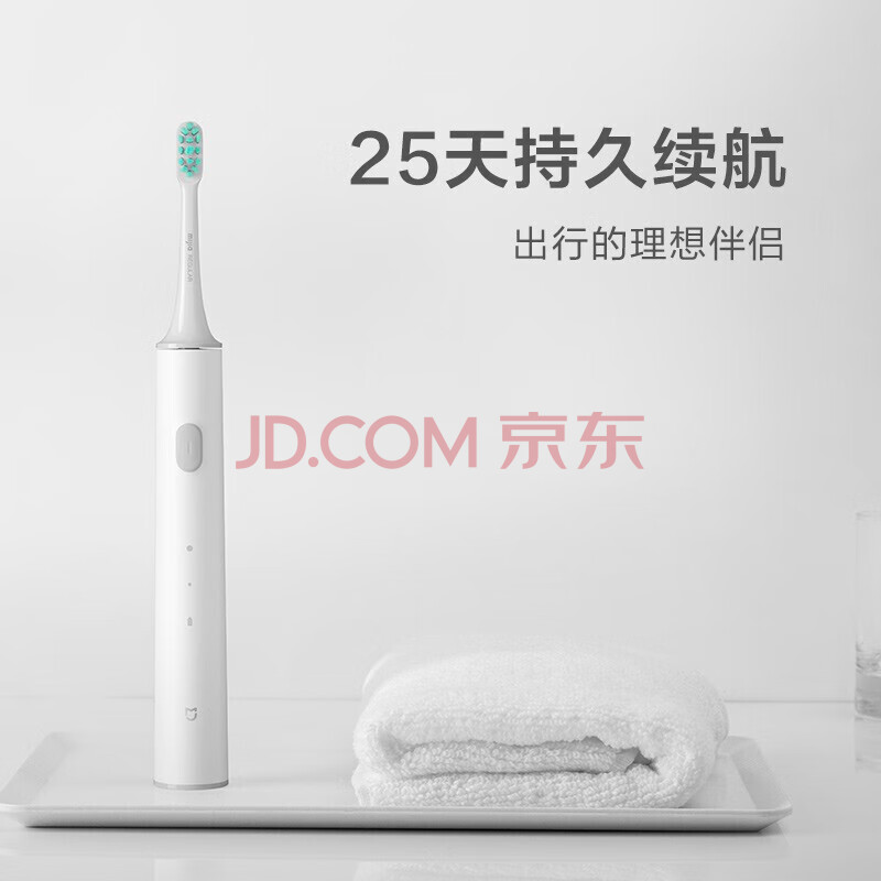 商品相册:小米电动牙刷声波震动两档模式25天续航软毛刷头USB充电 电动牙刷T300第