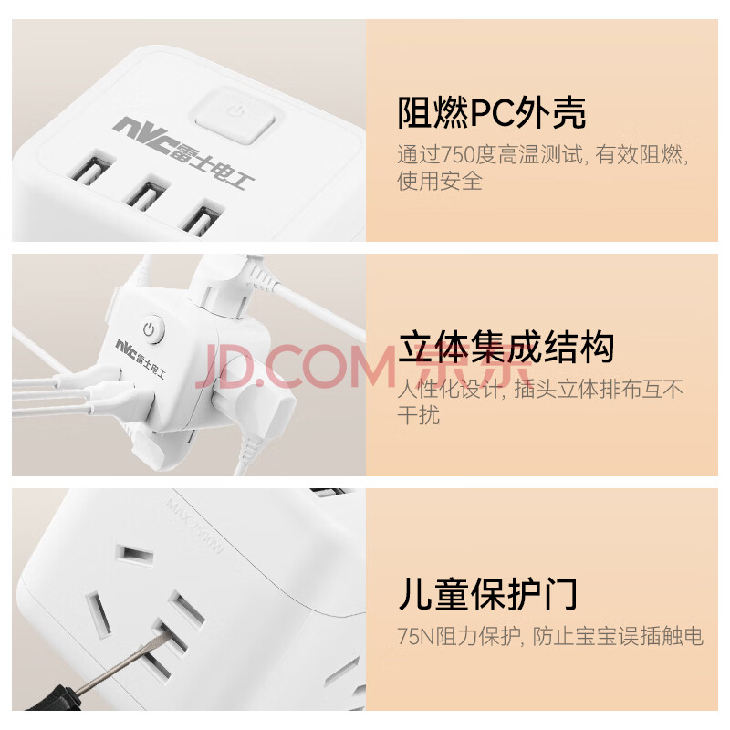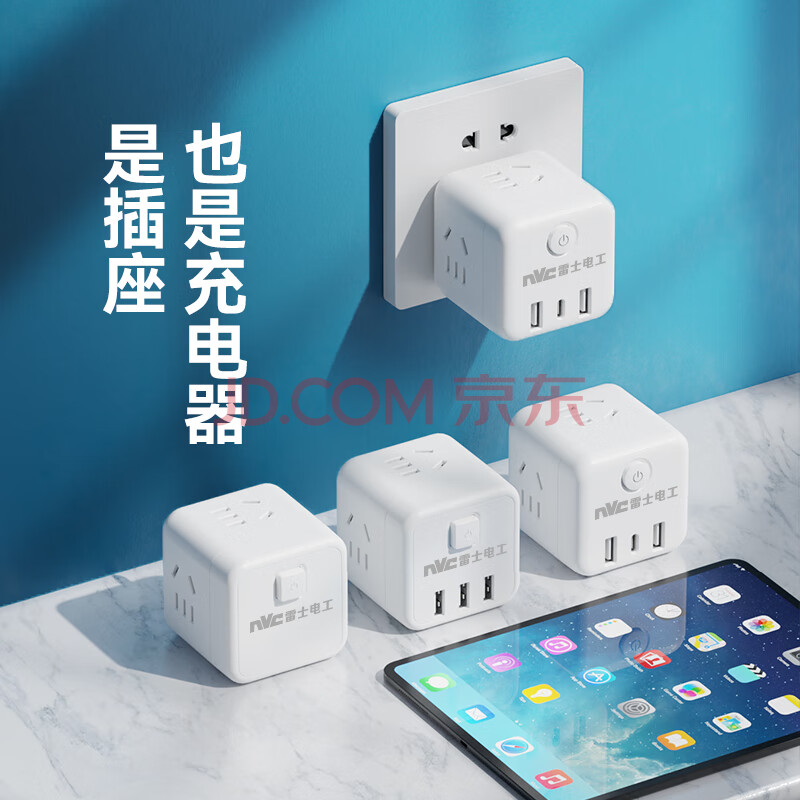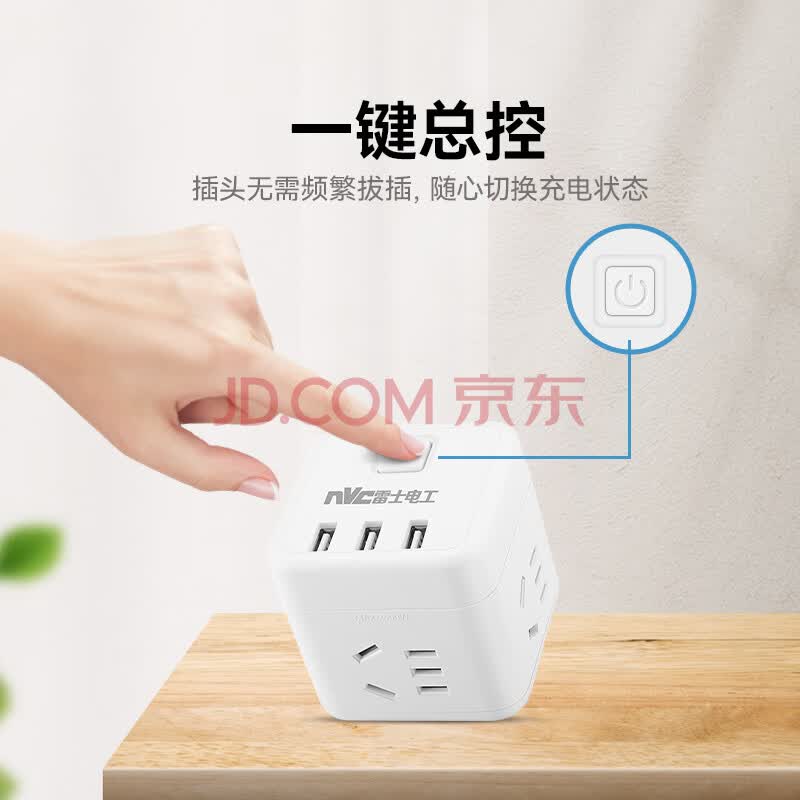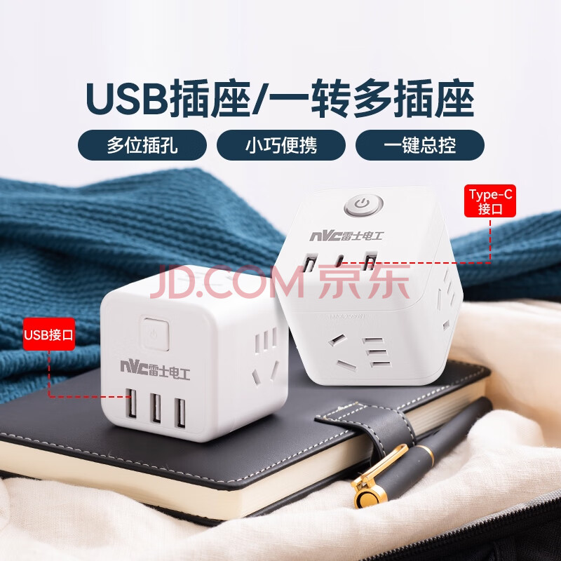 商品相册:NVC雷士电工 魔方插座 usb+Type C 多功能转换器 拓展插头 多孔多用插座 P7MFW第