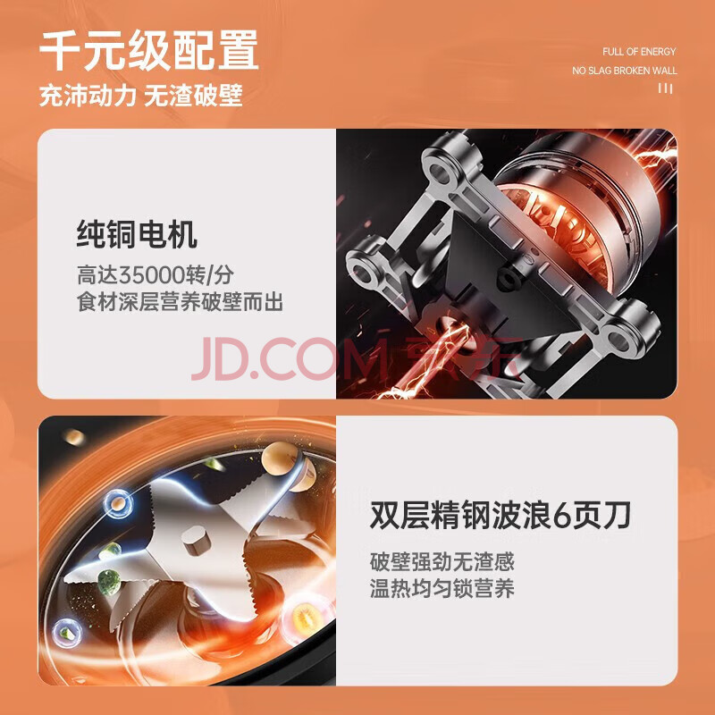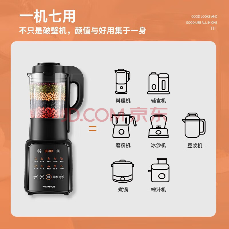 商品相册:九阳(Joyoung)破壁机家用免滤豆浆机1.75L大容量高转速榨汁机低音多功能料理机 L18-P132(单杯款)第1张/共4