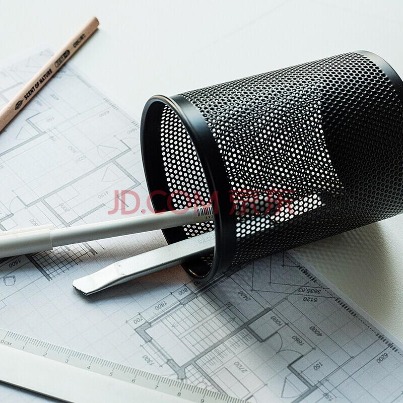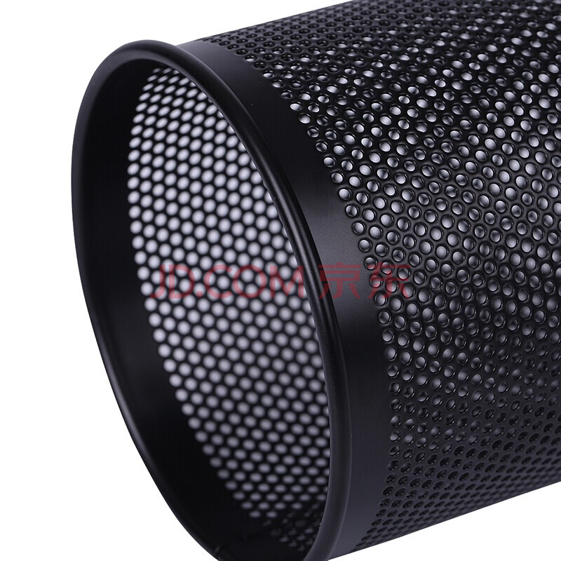 商品相册:得力(deli)笔筒909密集金属网纹圆形笔筒黑色铁网收纳筒简约办公室收纳时尚经典学生用创意桌面收纳盒第