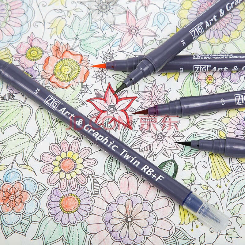 商品相册:吴竹(KURETAKE)进口ZIG软毛水彩笔柠檬黄软毛+硬笔两用单支装TUT-95-010水彩笔第