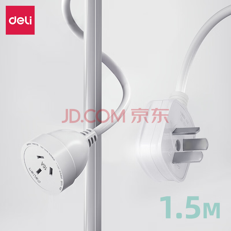 商品相册:得力(deli)1.5米16A 3孔3插电源线插座 接线板插排 电动车充电/空调插头延长线大功率拖线板18346(1.5)第
