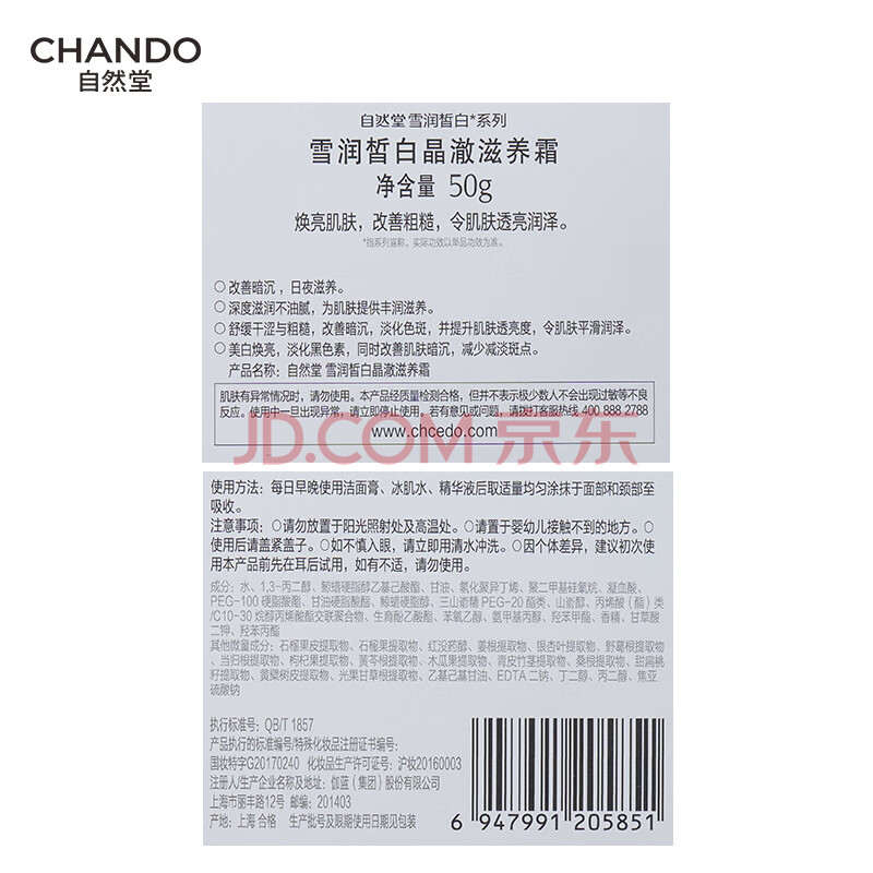 商品相册:自然堂【周翊然同款】雪润皙白晶澈滋养霜滋润型50g保湿面霜生日第