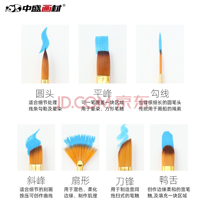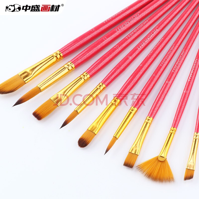 商品相册:中盛画材(transon)12支水粉笔套装尼龙多笔头画笔刷圆头扇形排笔油画丙烯颜料专用笔美术写生第