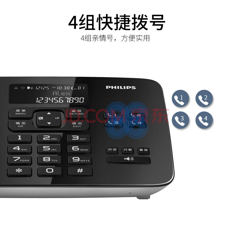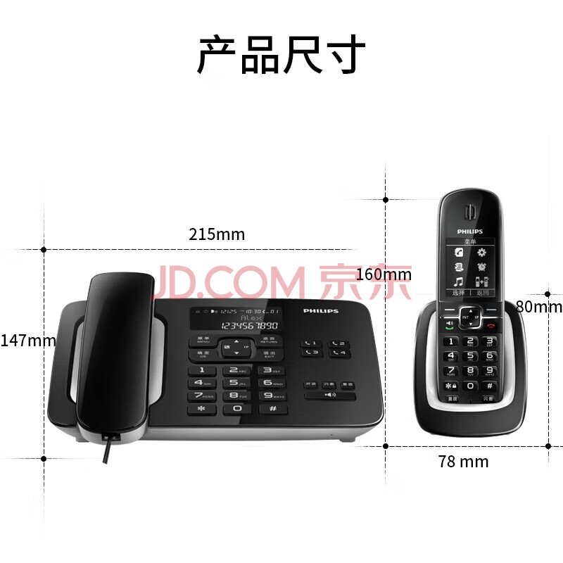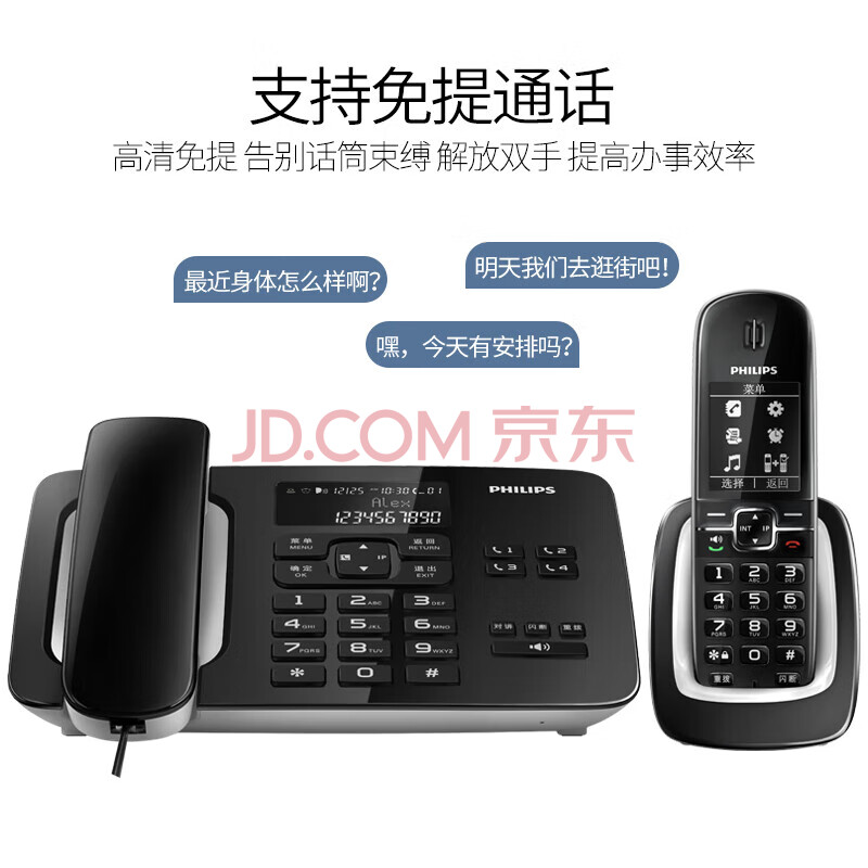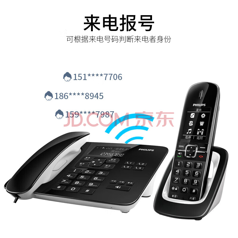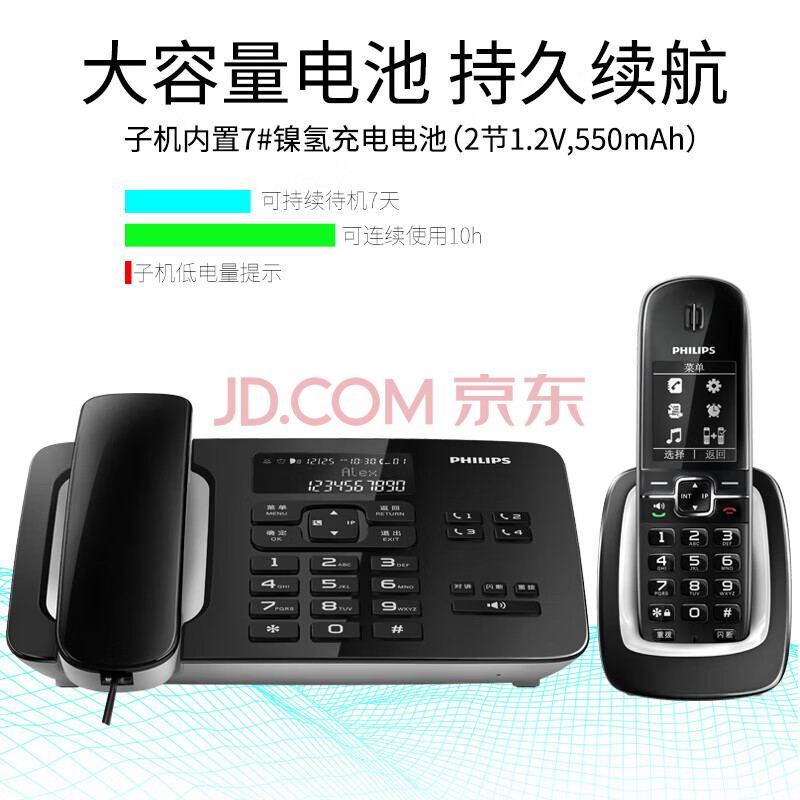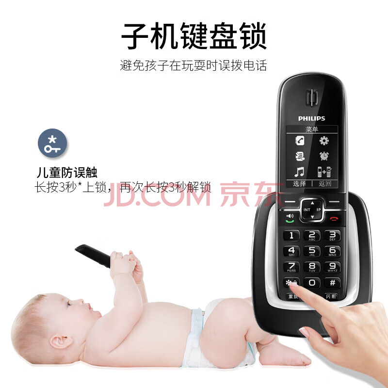 商品相册:飞利浦(PHILIPS)数字无绳电话机座机家用无线子母机办公固话/电话本/黑名单/来电语音报号码DCTG492黑色第