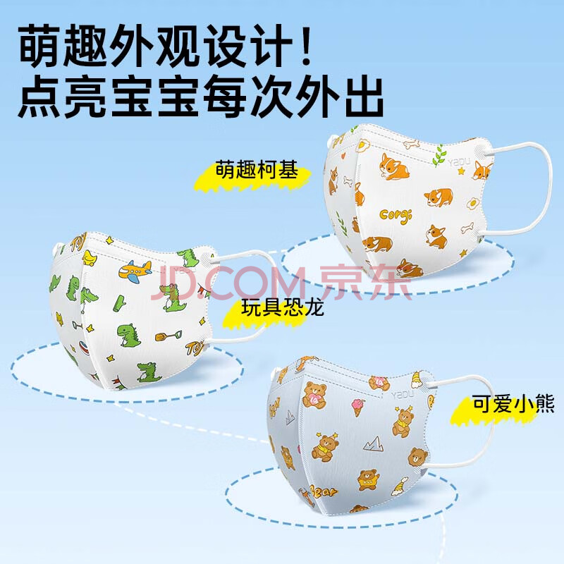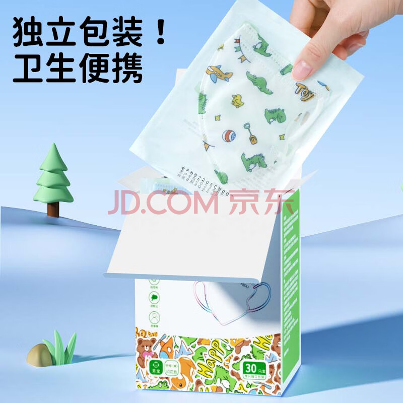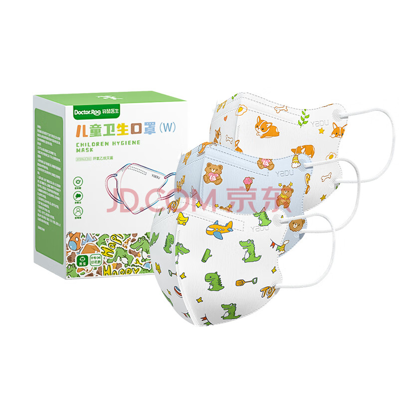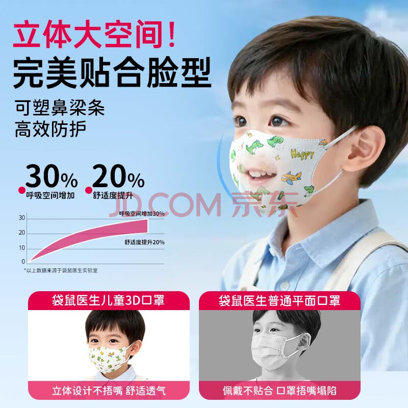 商品相册:袋鼠医生儿童口罩3-6岁小学生3D立体独立包装夏季薄款透气防尘花粉30支/盒第