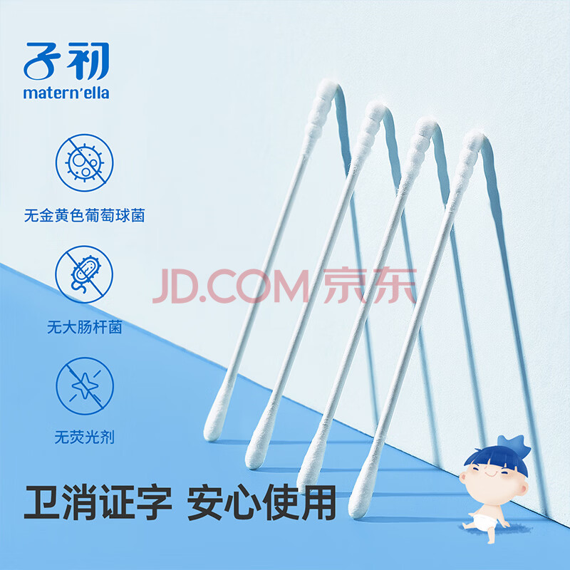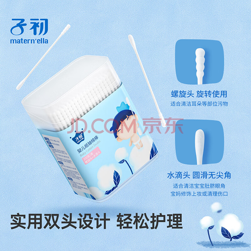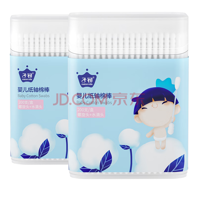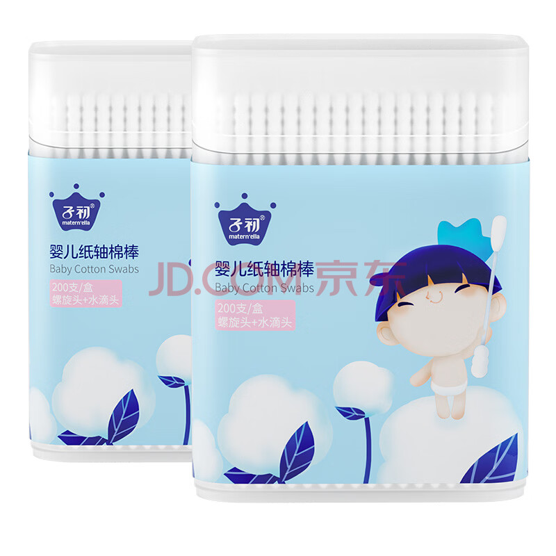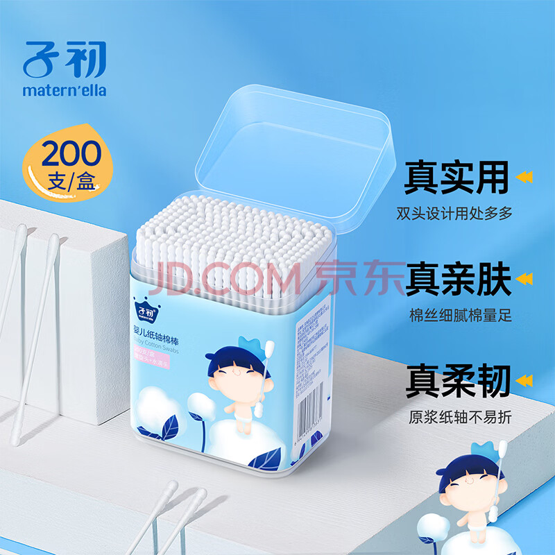 商品相册:子初婴儿棉签400支宝宝专用纸轴棉棒新生儿清洁鼻屎肚脐眼掏耳朵棉签第