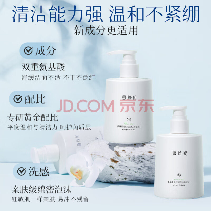 商品相册:雪玲妃氨基酸洁面乳500g控油保湿洗面奶深入清洁温和敏感肌适用男女家庭第