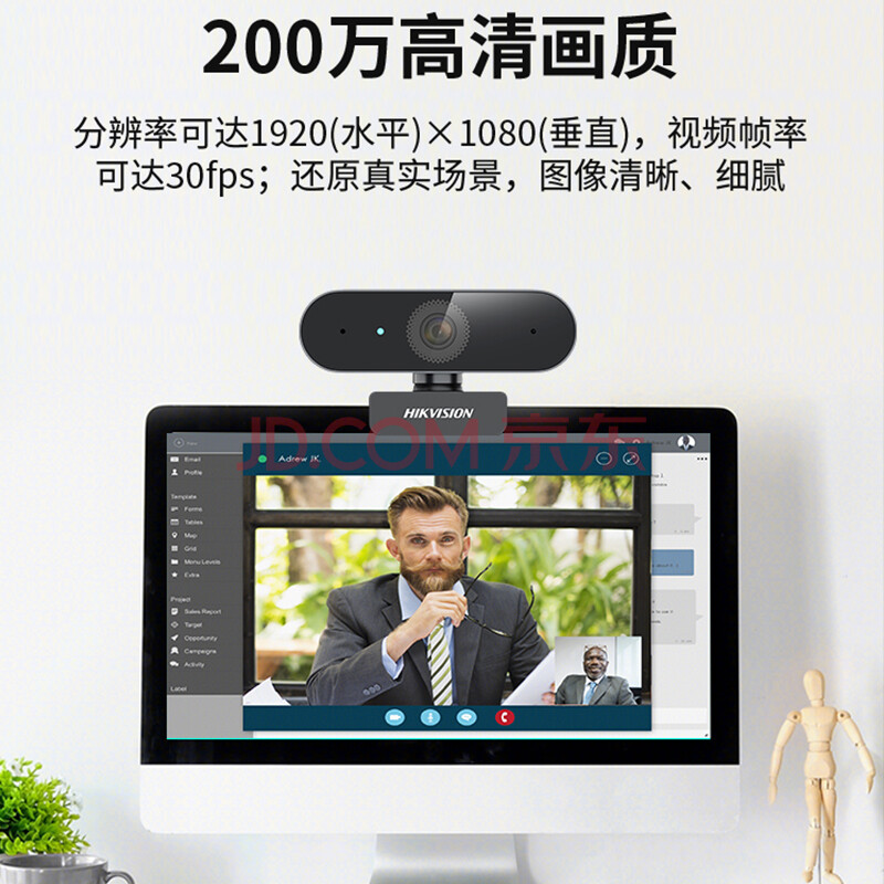 商品相册:HIKVISION海康威视电脑摄像头1080P高清带麦克风广角USB自动对焦外接笔记本台式机家用视频会议带货E12a第