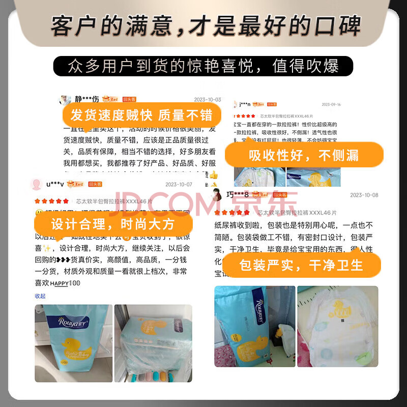 商品相册:柔丫芯太软拉拉裤L56片【全包臀】(9-14KG)超薄芯体环腰裤透气尿不湿第