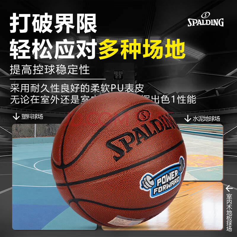 商品相册:斯伯丁篮球成人青训室内外耐磨PU标准7号球76-890Y第