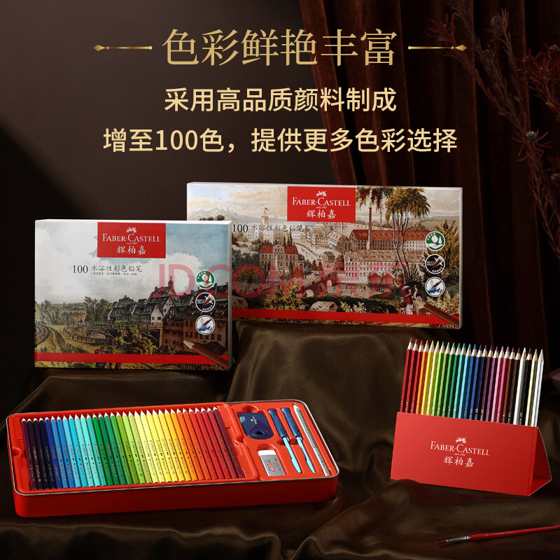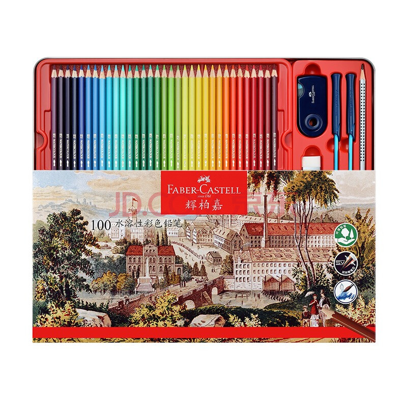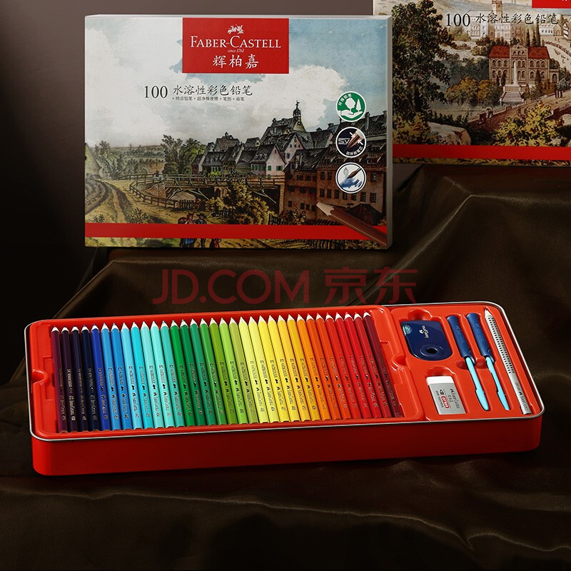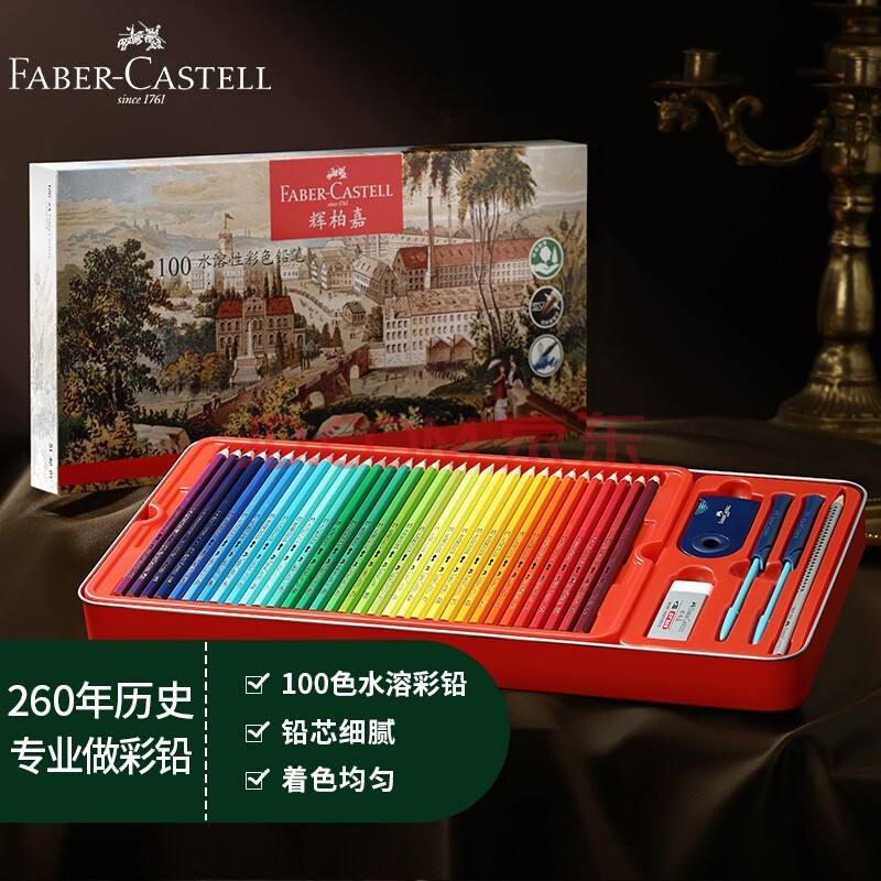 商品相册:辉柏嘉(Faber-castell)彩铅水溶性彩色铅笔绘画套装画画工具儿童礼物100色铁盒装514001速写绘画开学礼物第