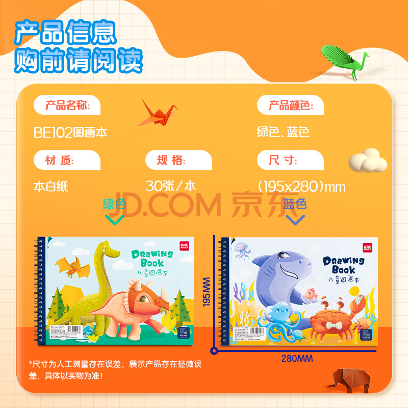 商品相册:得力(deli)2本60张儿童空白图画本易撕线设计幼儿园小学生美术绘画本画画本儿童涂鸦本学生开学文具第