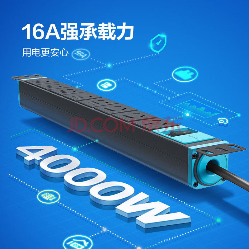 商品相册:公牛(BULL)16A大功率PDU桌面机柜插座/插线板/插排/排插/接线板 超功率保护 8位总控开关1.8米规格 GNE-108DE第