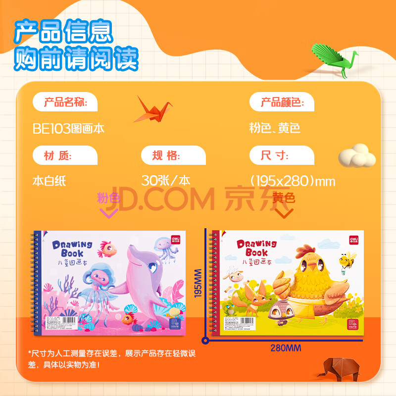 商品相册:得力(deli)2本60张萌宠日常2儿童空白图画本易撕线设计幼儿园小学生美术绘画本画画本涂鸦本学生开学文具第