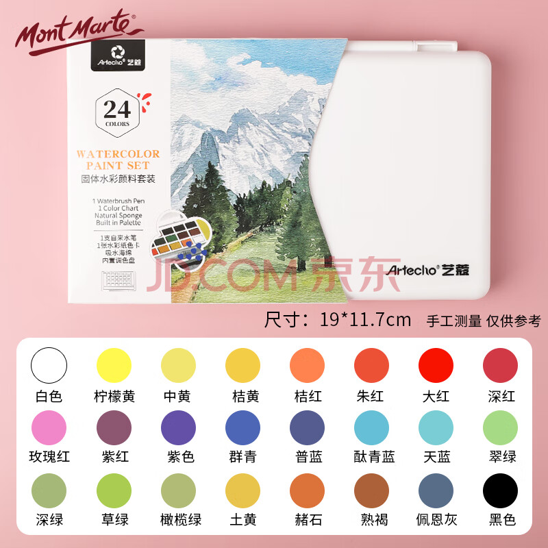 商品相册:蒙玛特24色水彩固体颜料美术学生考试级工具套装块状盒调色绘画进阶套装艺蔻系列SX-ATOD-WP2406-7jt第
