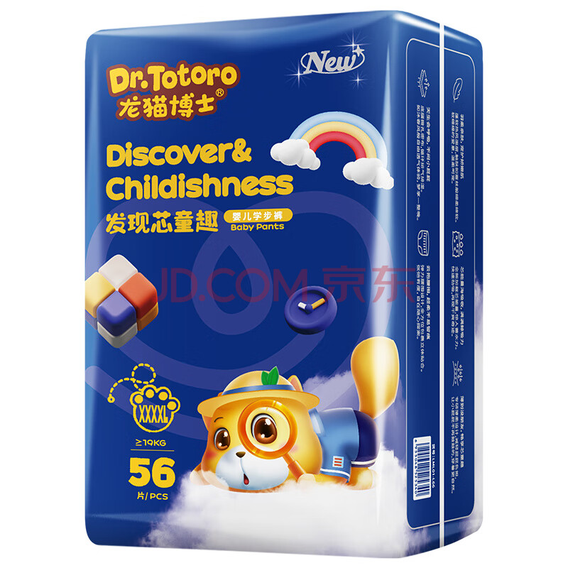 商品相册:龙猫博士芯童趣拉拉裤XXXXL码56片【18-21kg】加大婴儿尿不湿超薄透气尿裤第