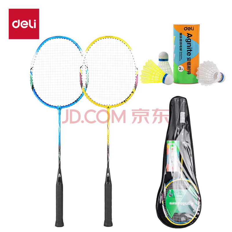 商品相册:得力(deli) 成人羽毛球拍套装运动训练轻巧耐磨铝合金男女对拍 送三球第