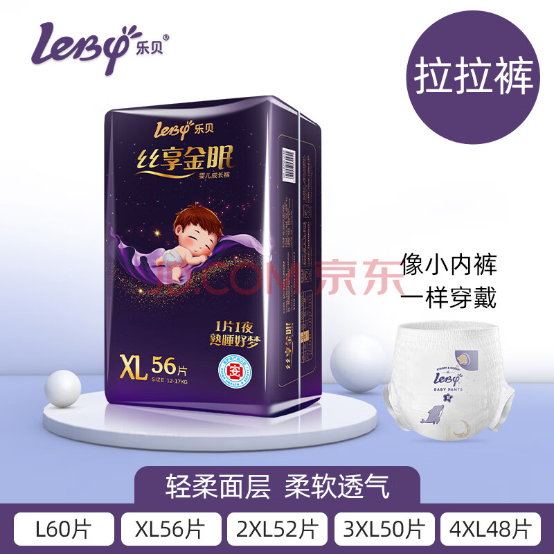 商品相册:leby金眠拉拉裤XXXL码50片【16-18kg】婴儿超薄干爽尿不湿透气防漏第