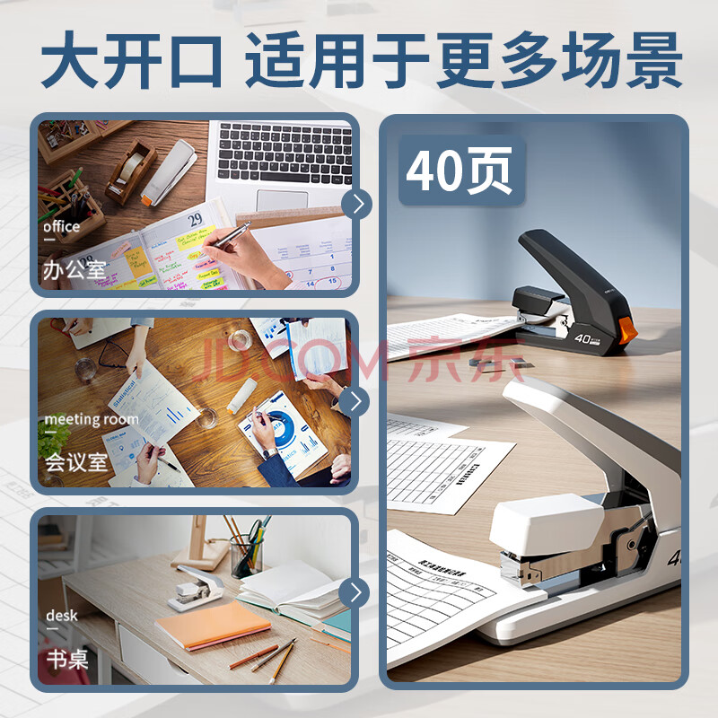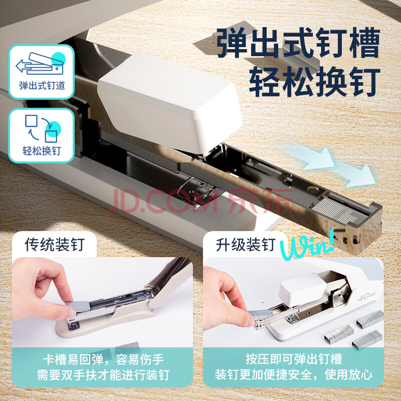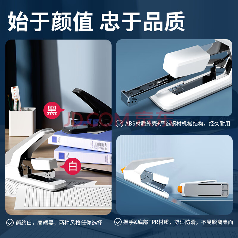 商品相册:得力(deli)(deli)40页省力订书机/订书器 防卡钉功能 弹出式钉道 办公用品 白色第