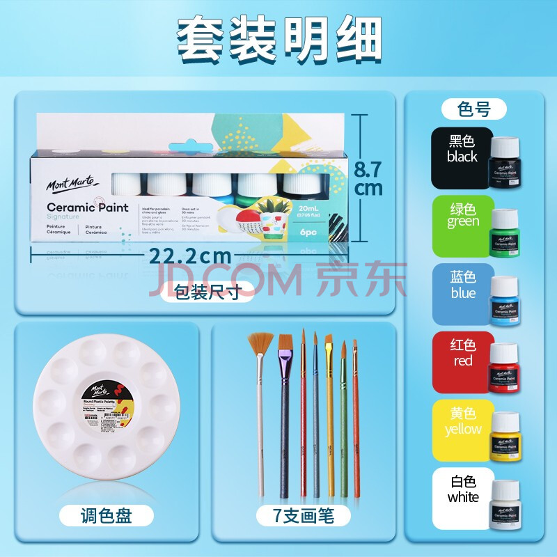 商品相册:蒙玛特(MontMarte)陶瓷颜料6色20ml玻璃画瓷器diy颜料防水免烤自然干釉料VSX-PMHS0023-1美育工具第