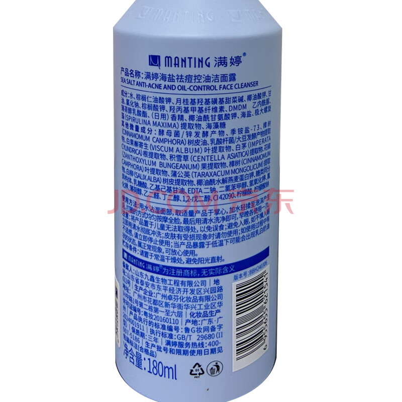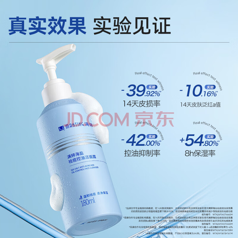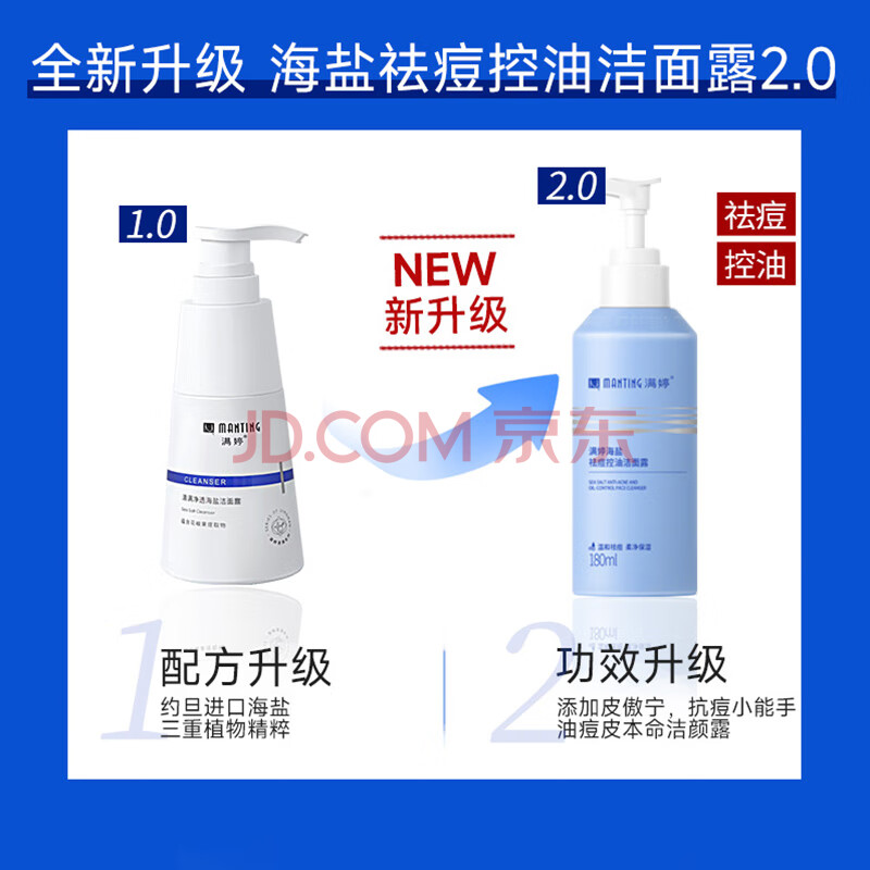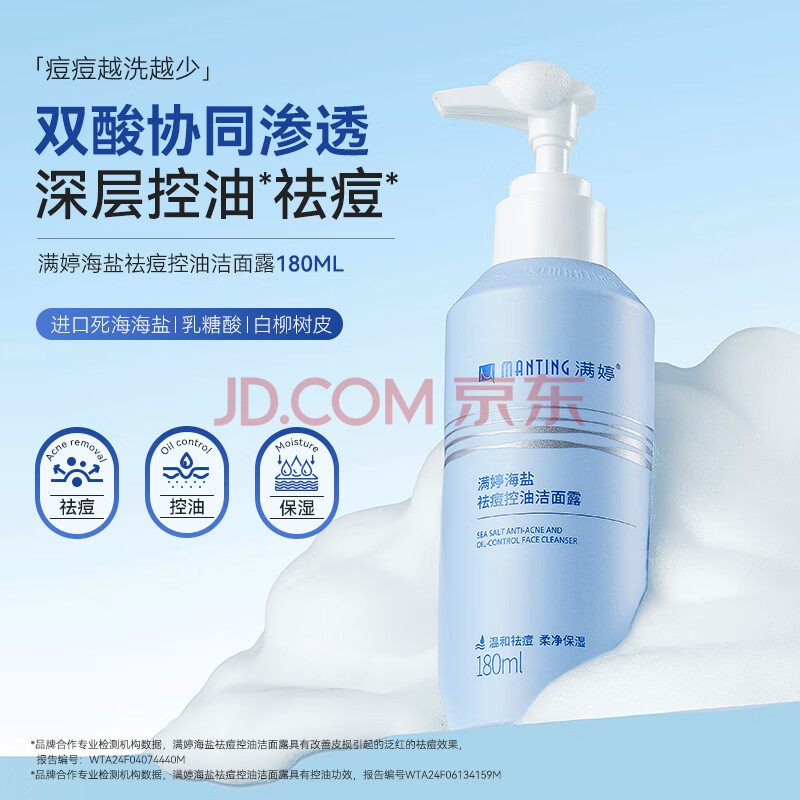 商品相册:满婷(MANTING)海盐祛痘控油洁面露180ml*2(水油平衡改善痘肌保湿男女洗面奶)第