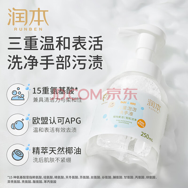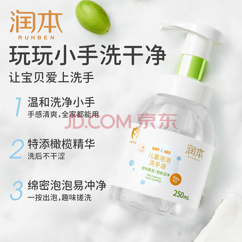 商品相册:润本儿童泡泡洗手液250ml宝宝洗手液杀菌温和不伤手按压泡沫型家用第