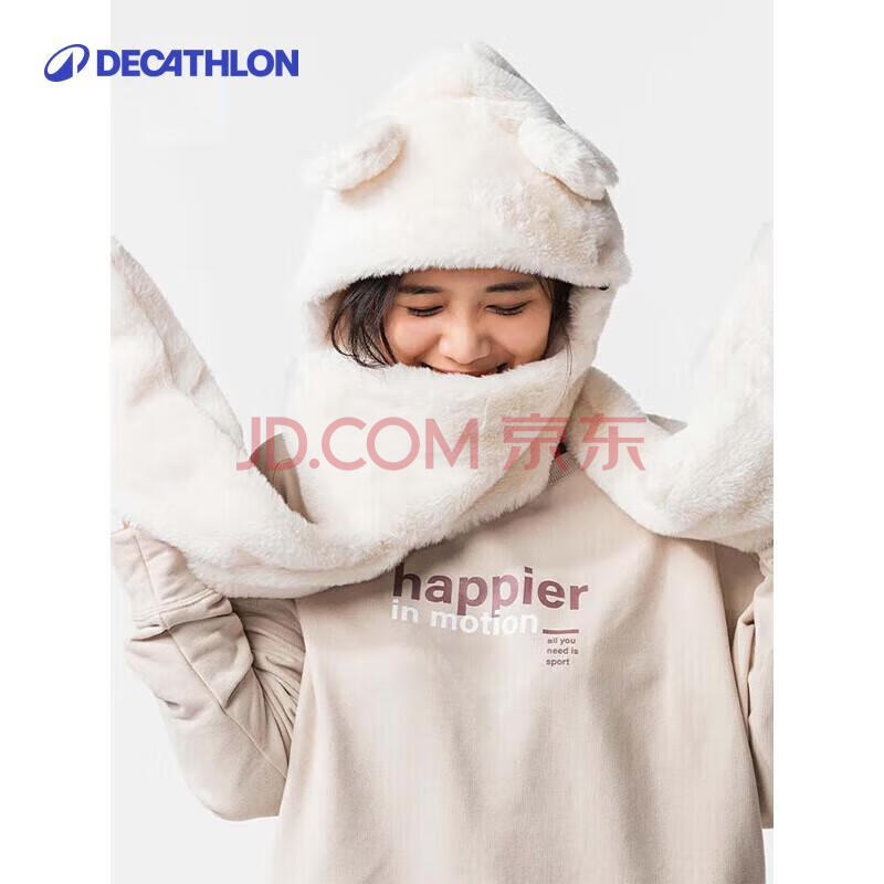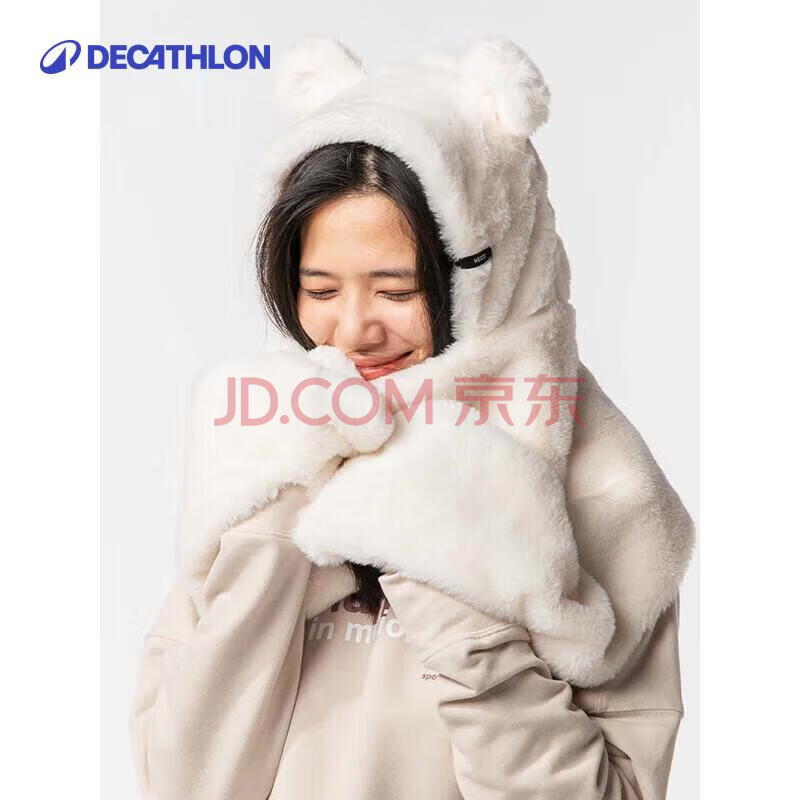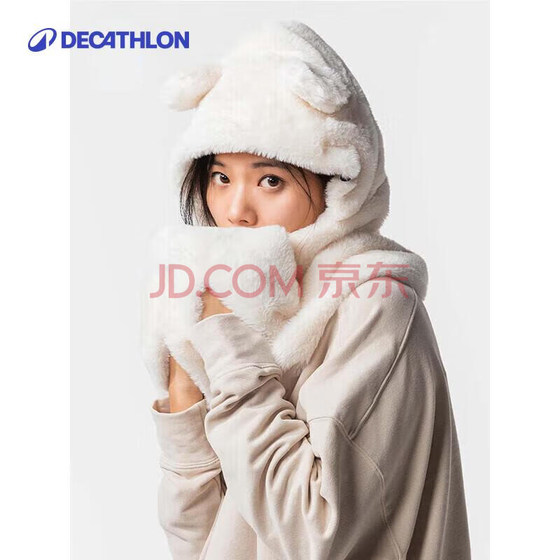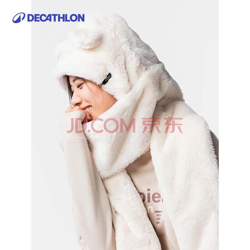 商品相册:迪卡侬熊抱抱围巾帽子一体秋冬毛绒熊耳围脖可爱OVWH乳白色均码-4804264第