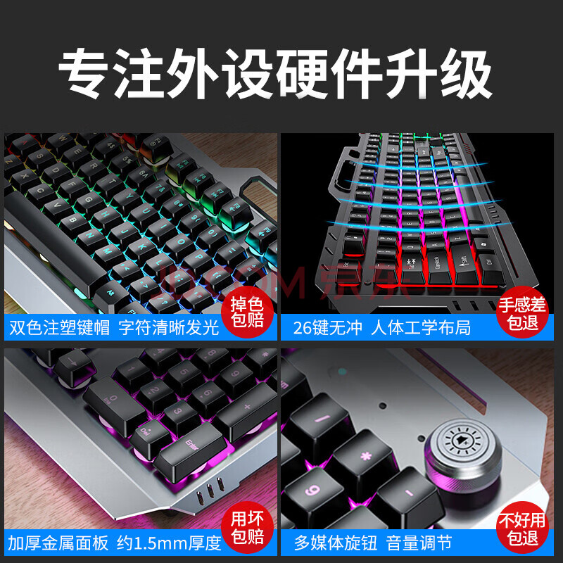 商品相册:前行者(EWEADN)GX810无线机械手感键盘鼠标游戏键鼠套装可充电台式电脑笔记本薄膜带旋钮电竞混光外设104键第