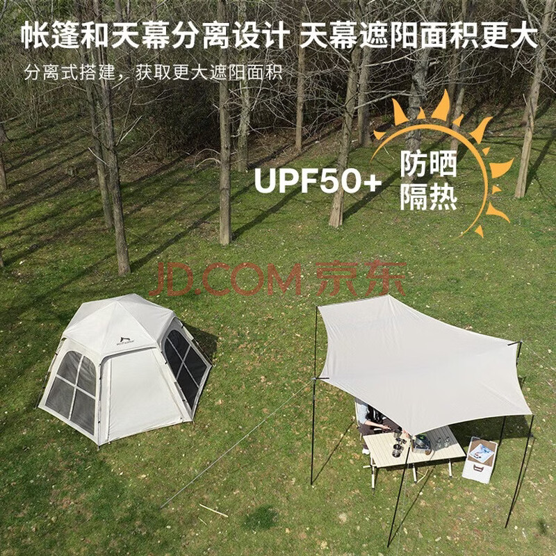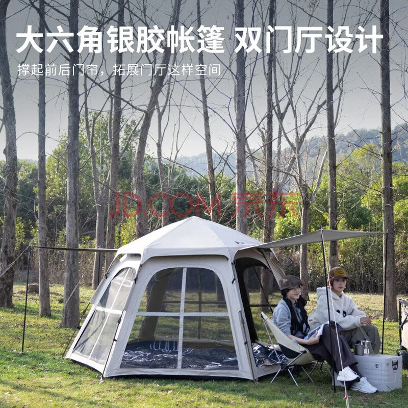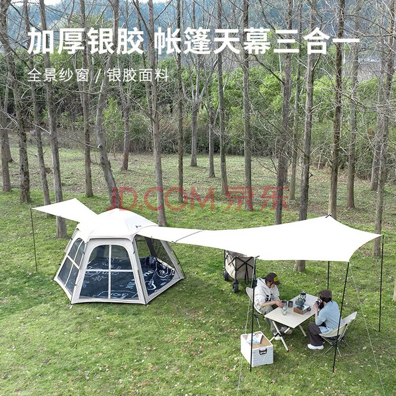 商品相册:狼行者银胶六角帐篷户外露营大空间自动速开免搭建野餐野营遮阳第