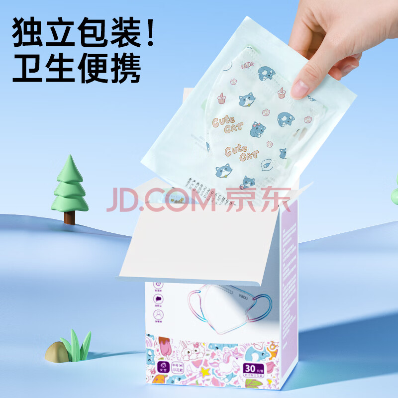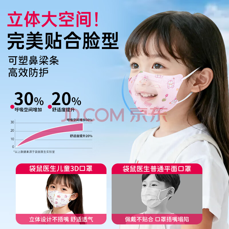商品相册:袋鼠医生儿童口罩3-6岁3D立体独立包装夏季薄款透气亲肤防飞沫防尘粉30只第