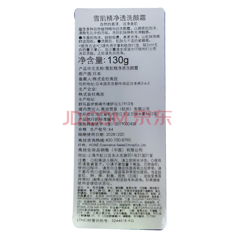 商品相册:雪肌精(SEKKISEI)净透洗颜霜130g 深层清洁保湿男女日本洁面洗面奶第
