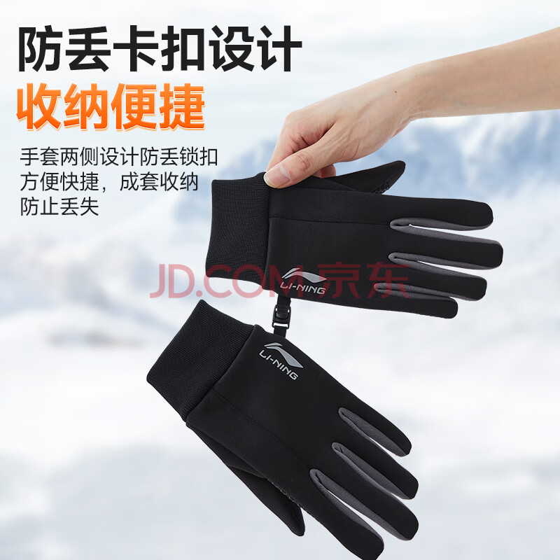商品相册:李宁骑行手套【保暖升级】冬季男加绒自行车户外防风防冻触屏滑雪手套第1张/共9