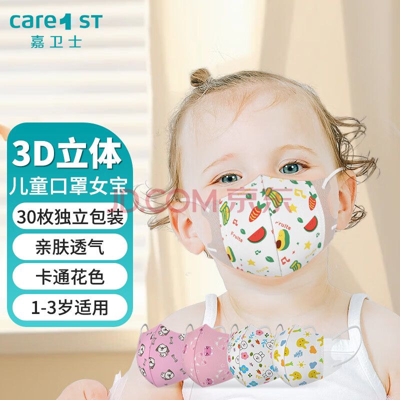 商品相册:Care1st嘉卫士儿童口罩 宝宝立体口罩 秋冬保暖防尘防飞沫女宝30枚独立装第