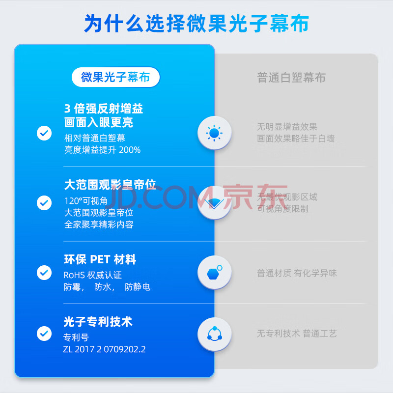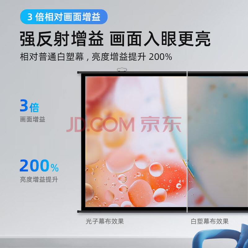 商品相册:微果(VIMGO)投影仪80英寸光子幕布投影仪家用投影机高性能电影放映银幕3倍相对增益120°可视角第
